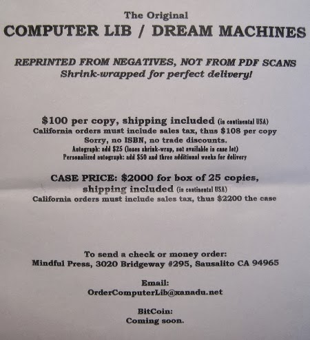 Here's the back of the Computer Lib flyer including payment address, terms, and email ordering address: